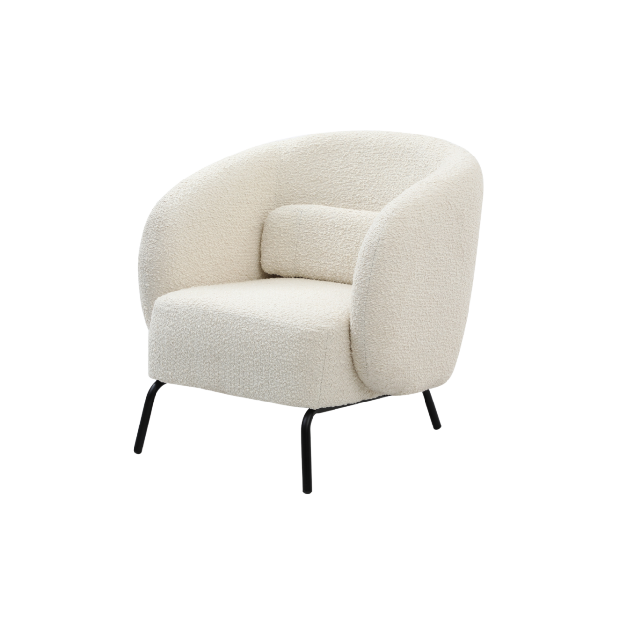 The Joey Armchair is a perfect blend of style and comfort. It boasts a contemporary curved design, made with boucle fabric that adds texture and depth to the overall look. The chair sits on sleek matte black coated legs, which complement the boucle fabric beautifully. The chair comes with a plush cushion that provides maximum comfort and support for you to relax and unwind in.